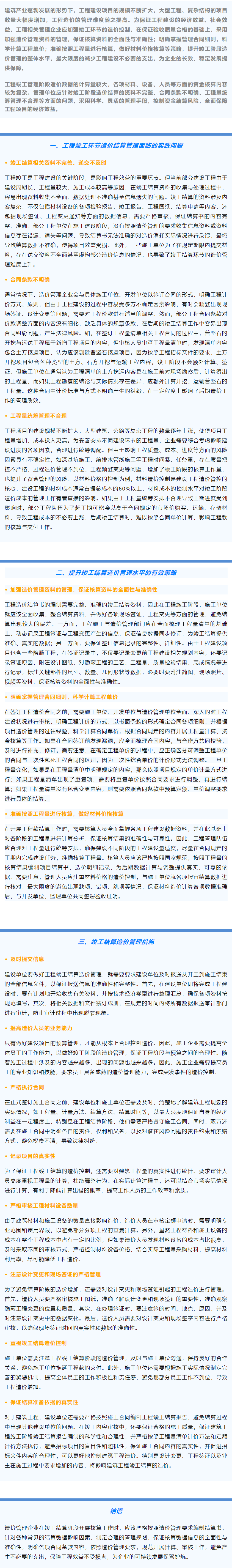 工程造价中竣工结算阶段的管理策略