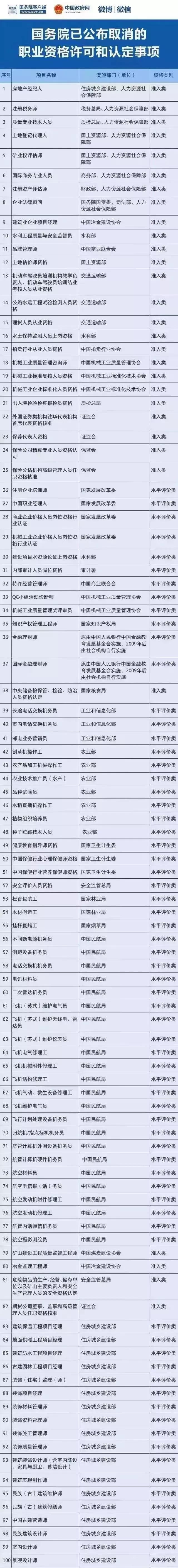下面就是被国务院取消的资格认定。