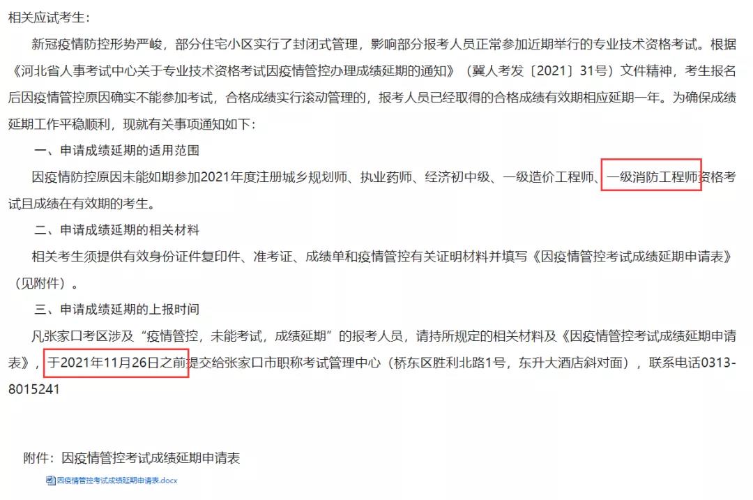 因疫情影响,未参加一消考试的考生务必要在规定时间内申请办理成绩延期!以下为湖北、河北、张家口、山西、湖南、大连六地申请办理成绩延期时间要求汇总! 请相关考生多关注报考地的人事考试网通知,按通知列明事项及时在规定时间内申请成绩延期!