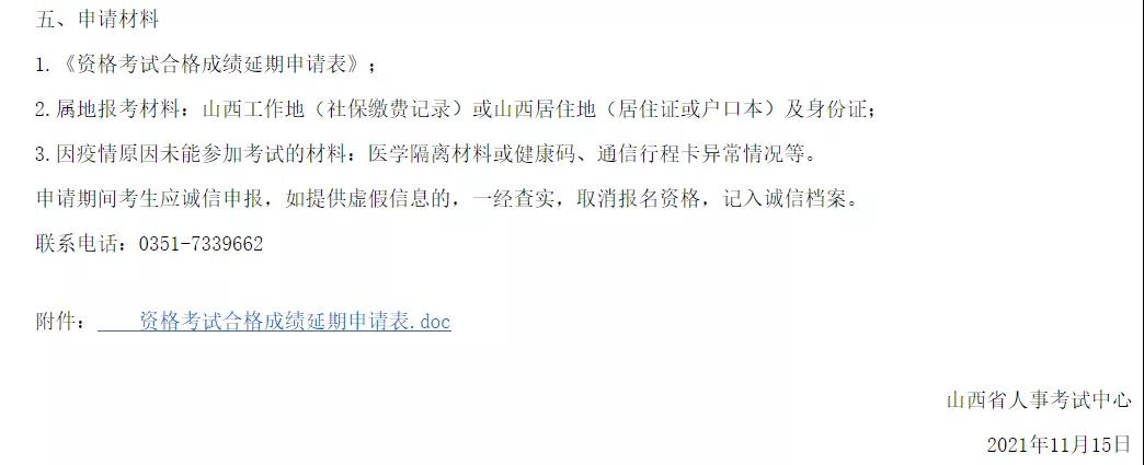 关于山西考区部分职业资格考试申请成绩延期的通知