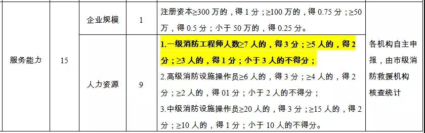 2.中级消防设施操作员≥20人的,得3分;≥15人的,得2分;≥10人的,得1分;小于10人的不得分;