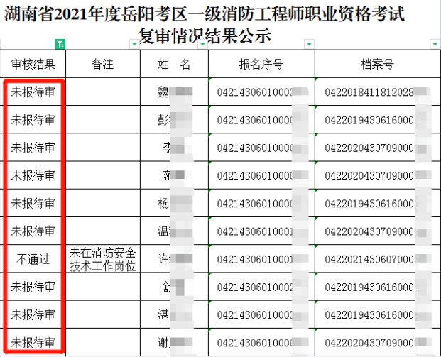 岳阳市关于2021年度一级消防工程师职业水平考试考后人工核查情况结果公示