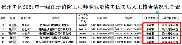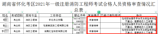2021年、2020年一级消防工程师考后资格怀化考区考后人工核查结果公示