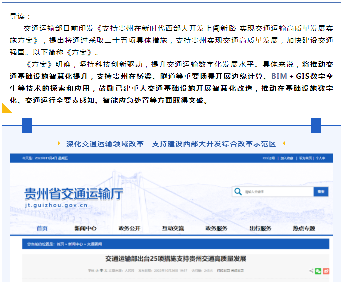 ![]() ![]() 《方案》明确,将科学有序推进交通强国建设试点工作,支持贵州在交通运输投融资模式创新、“四好农村路”高质量发展等方面开展试点,注重经验总结,形成一批可复制、可应用、可推广的成果经验,促进试点成果转换为加快建设交通强国的实际效能。 同时,深化交通运输政务服务“全省通办、一次办成”“一窗式”“跨省通办”,动态调整行政许可事项清单。按照《国务院办公厅关于全面推行证明事项和涉企经营许可事项告知承诺制的指导意见》(国办发〔2020〕42号),深化“减证便民”,进一步解决企业和群众办证多、办事难等问题。 提升交通供给能力 指导支持贵州深化“四好农村路”示范创建 《方案》提出,将提升交通供给能力,推进乡村振兴和新型城镇化。巩固拓展交通运输脱贫攻坚成果同乡村振兴有效衔接,严格落实过渡期“四个不摘”要求,以贵州省国家乡村振兴重点帮扶县为重点,推进脱贫地区交通运输发展。 明确指导支持贵州深化“四好农村路”示范创建,深化农村公路管理养护体制改革试点工作,健全完善农村公路“路长制”运行长效机制,推进农村公路路况自动化检测,大力发展“农村公路十”模式,挖掘农村公路“路衍经济”潜能。 城际出行方面,提出要优化交通运输供给能力,支持贵阳、遵义、毕节发展公铁、公空旅客联程运输,鼓励黔中城市群和铜仁、都匀等高铁通道节点城市发展公铁旅客联程运输。推动铁路和道路运输客流数据共享,优化运输组织,提升服务能力。 完善综合交通网络 支持贵州积极融入长江经济带 《方案》明确,加快交通基础设施联网、补网、强链建设,以国家综合立体交通网主骨架“6轴7廊8通道”为重点,围绕粤港澳-成渝主轴和沪昆、广昆走廊,加快兰海、沪昆等国家高速公路繁忙路段扩容改造,根据交通需求情况适时推进厦蓉、杭瑞、蓉遵、贵阳环城等国家高速公路扩容改造。协调推进省际通道建设,加快打通省际瓶颈路段。 支持贵州积极融入长江经济带,加快乌江航运扩能工程乌江渡至龚滩三级航道建设工程、清水江白市至分水溪航道建设工程。支持加快推进乌江思林、沙沱二线1000吨级通航设施以及龙滩1000吨级通航设施建设。支持红水河现有通航设施升级改造。推动望谟港、播州港、开阳港、思南港等港口建设。 巩固提升贵州在西部陆海新通道中的地位,加快主通道建设,推进贵阳至南宁、黄桶至百色铁路和黔桂铁路增建二线等建设,实施贵广铁路提质改造工程,支持适时开展兴义至永州至郴州至赣州、泸州至遵义、盘州经六盘水至威宁至昭通等铁路前期工作。研究建设重庆经遵义至贵阳至柳州至广州港、深圳港、北部湾港等铁路集装箱大通道。 支持贵阳、遵义加快建设全国性综合交通枢纽城市。鼓励地方推进区域性、地区性综合交通枢纽城市建设,增强区域辐射能力。支持广州港、深圳港、北部湾港在贵州设立无水港。支持贵州深化交通与旅游融合发展,打造“桥旅融合”示范项目和路旅融合品牌。 坚持科技创新驱动 支持贵州推进数字交通新业态发展 《方案》明确,坚持科技创新驱动,提升交通运输数字化发展水平。 具体来说,将推动交通基础设施智慧化提升,支持贵州在桥梁、隧道等重要场景开展边缘计算、BIM+GIS数字孪生等技术的探索和应用,鼓励已建重大交通基础设施开展智慧化改造,推动在基础设施数字化、交通运行全要素感知、智能应急处置等方面取得突破。 支持贵州推进数字交通新业态发展。鼓励实体企业发展网络货运,加快网络货运高质量发展。鼓励和规范发展定制客运。 加快交通运输绿色低碳转型 共同打造生态文明建设先行区 《方案》还明确,将优化调整运输结构,推动货运物流企业与工矿企业、生产制造企业合作,引导大宗物资“公转铁”。鼓励发展集装箱运输、滚装运输等模式,引导沿江物资“公转水”。 同时,扩大新能源在交通运输领域应用。深化公交都市建设、城市绿色货运配送示范建设,推进城市公交出租汽车城市物流配送车辆新能源推广应用,推动新能源、清洁能源等在中重型卡车中的应用,加快老旧车辆淘汰更新。加快高速公路服务区充电基础设施建设。推进港口码头和船舶岸电设施建设改造,不断提高岸电使用量。推动新能源清洁能源动力船舶发展。 来源:网络版权归原作者所有,侵权请联系删除(责任编辑:一百一教育) |