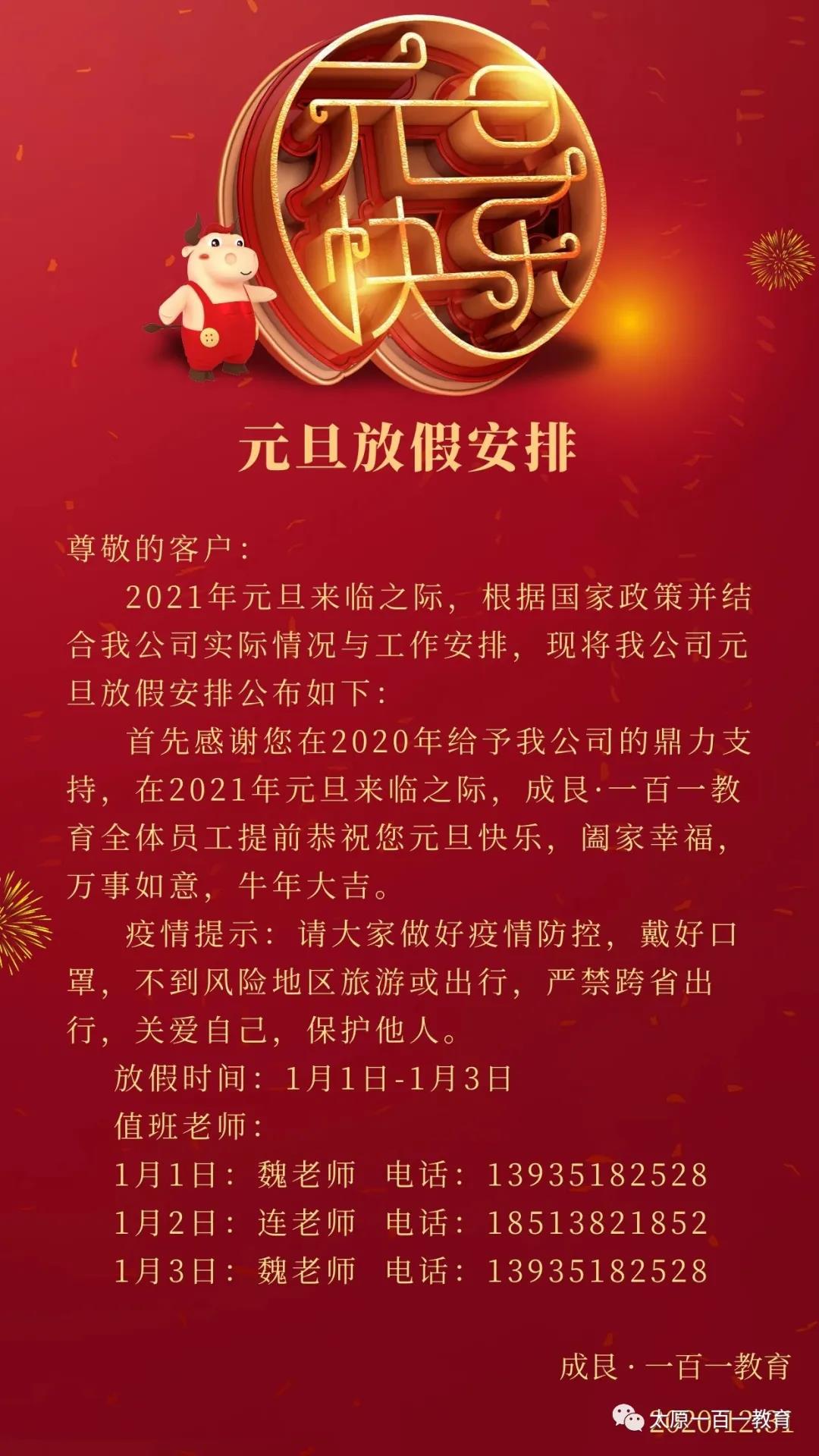 【成艮 · 一百一教育】元旦放假通知...