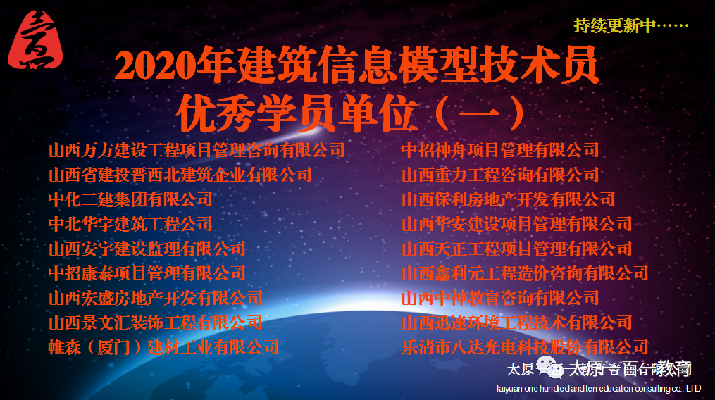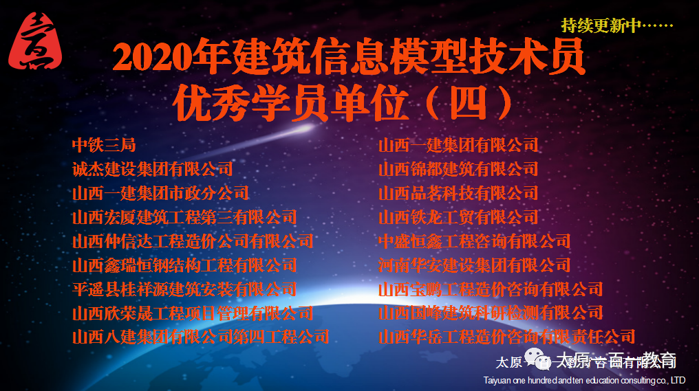 从团队讲,这是奋进;从企业讲,这是发展大势;从行业讲,这是技术变革;从地方讲,这是地 区发展的必然;从中央讲,这是国家富强的大计。历史和实践证明,BIM的大时代已经来临,我 们唯有迎接发展大潮,方能成就伟业! 企业之一,也是《建筑信息模型(BIM)技术员-国家职业技能等级认定培训教程》编委会成员之一,还是 山西省唯一一家国家指定的建筑信息模型(BIM)技术员考培中心。我们致力于为山西建筑行业,建筑企 业培养专业的BIM人才,同时我们也专门成立独立的BIM项目组,专业承接各种、各类BIM项目。现建 筑信息模型(BIM)技术员专业技术等级考试实操建模已统一接入国家超算中心。未来,BIM技术将在我三 晋大地上如火如荼的发展起来……